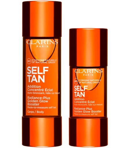 De CLARINS Bronzing Duo Set bevat: CLARINS Addition Concentré Éclat Corps 30 mlCLARINS Addition Concentré Éclat Visage 15 ml Lichaam: Addition Concentré Eclat Corps is een zelfbruiner die kan worden gemengd met elke vochtinbrengende Clarins bodylotion voor een prachtige bruine teint zonder dat dit ten koste gaat van de vochtinbrengende of verstevigende voordelen van uw gebruikelijke huidverzorging. Zeer gemakkelijk en 100% veilig te gebruiken, voor een stralende, absoluut natuurlijke zomerkleuring op maat. Hoe te gebruiken: Open de fles en draai hem om. Druk op de bodem van het flesje en haal er 4 tot 6 druppels uit. Meng met een body moisturizer in de palm van je hand. Gelijkmatig verdelen over het gekozen lichaamsdeel (benen, armen, buik,...). Was uw handen onmiddellijk daarna grondig met zeep. Niet onverdund toepassen. Gezicht: Voor een absoluut natuurlijke bruining en een stralend mooie teint op maat. De Addition Concentré Eclat zelfbruiner kan worden gecombineerd met elke Clarins gezichtsverzorging. Absoluut eenvoudig en veilig voor een verbazingwekkend natuurlijke bruine kleur die kan worden gevarieerd in intensiteit. Combineert het zelfbruinende effect met de hydraterende, verstevigende of anti-rimpelwerking van uw gebruikelijke Clarins dag- en nachtverzorging. Toepassing: Meng 2 tot 3 druppels van het concentraat in de palm van uw hand met uw gebruikelijke Clarins gezichtsverzorging. Niet onverdund toepassen. Was de handen grondig met zeep na gebruik. ...