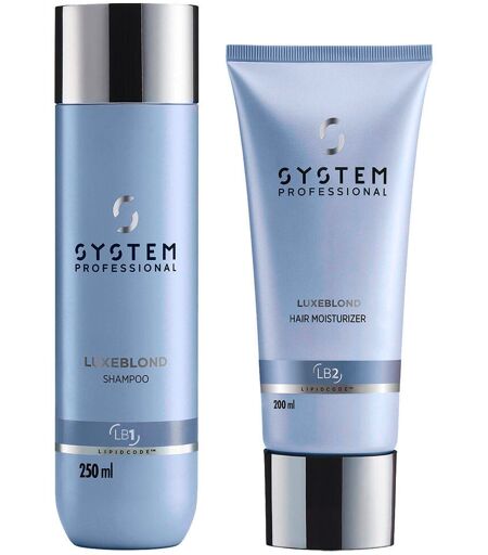 De set bestaat uit: Luxeblond Shampoo LB1, 250 mlLuxeblond Hair Moisturizer LB2, 200 ml Shampoo: Reinigt dagelijks zacht, verwijdert build-up en onzuiverheden uit de omgeving en neutraliseert direct oranje en gele ondertonen. Toepassing: Masseer gelijkmatig in vochtig haar. Grondig uitspoelen. Hair Moisturizer: Intensieve crème tegen haarbreuk voor gladder, gehydrateerd haar, versterkt tegen haarbreuk. Tot 99% meer versterking tegen haarbreuk*.Maakt het haaroppervlak glad van aanzet tot punt voor tot 82% gladder haar*.Hydrateert beschadigd en droog haar voor een betere handelbaarheid en minder pluis*. *in vergelijking met licht conditionerende shampoo Toepassing: Masseer gelijkmatig in vochtig haar. Doorkammen en in het haar laten zitten (ook 's nachts) of na 30 seconden grondig uitspoelen. De LuxeBlond lijn helpt de haarvezel van binnenuit te herstellen en neutraliseert onmiddellijk ongewenste warme ondertonen. Samen pakken de formules van LuxeBlond de grootste problemen met verlicht haar aan - voor gladder, koeler blond haar, versterkt tegen haarbreuk. Schoonheid geboren uit wetenschap. Sinds de lancering van het merk in 1974 heeft System Professional altijd de wetenschap gebruikt om een essentiële haarverzorgingsvraag te beantwoorden: Wat is de beste oplossing voor transformerende haarverzorging? Het antwoord: langdurige, diepgaande oplossingen die gebruik maken van deskundige kennis om stylisten en hun klanten in staat te stellen precies de gewenste haarresultaten te bereiken. Wij geloven dat transformerende haarverzorging bij de kern begint. Daarom hebben onze wetenschappers de kracht van lipiden ingezet en de gepatenteerde LipidCode™ ontwikkeld. Een absolute spitstechnologie die het haar diepgaand regenereert, waardoor het merkbaar gezonder en veerkrachtiger wordt. Onze unieke producten combineren luxueuze texturen met inspirerende geuren - om u een ervaring voor alle zintuigen te bieden. Uw haarverzorging wordt een ritueel van welzijn. Elke dag opnieuw. Wij creëren haarregeneratie met één doel: het haar verfraaien, uw ambities versterken en u het vertrouwen geven om uzelf elke dag te overtreffen. ...