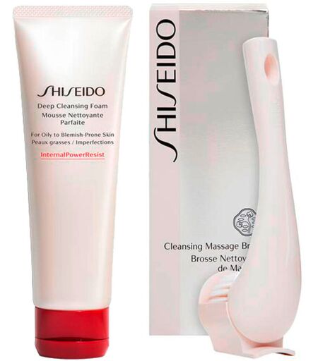 Het Shiseido Deep Cleansing Duo bevat: 1 x Shiseido Deep Cleansing Foam, 125 ml1 x Shiseido Generic Skincare Cleansing Massage Brush Shiseido Deep Cleansing Foam: Een luchtig reinigingsschuim voor de vette en puistgevoelige huid met talgabsorberend poeder en diepreinigende korrels die dode huidcellen, vuil en overtollig talg effectief verwijderen zonder de huid te ontdoen van essentieel vocht. Voor een langdurig heldere en frisse teint. Bevat Japans Kirishima Mineral Spring Water, Rijstkiemolie en Pioenrooswortelolie. Dermatologisch getest. Shiseido Generic Skincare Cleansing Massage Brush: De zachte gezichtsreinigingsborstel versterkt het effect van de schuimreiniger door de poriën extra grondig te reinigen en onzuiverheden te verwijderen. Met zijn zijdezachte, fijn toelopende borstelharen en flexibele siliconenkussentjes reinigt en masseert de borstel de huid zacht. Tijdens de massage wordt de huid zacht geëxfolieerd en voelt zijdezacht aan. ...