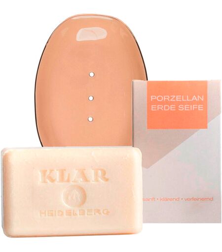 Het Klar Klassik reinigingsduo bevat: 1 x KLAR Porseleinzeep, 100 g1 x KLAR Flat Beige zeepbakje, beige, 1 st. KLAR Porseleinzeep: Voor mensen met een zeer gevoelige huid kan zelfs de dagelijkse reiniging een probleem worden. Veel reinigingslotions zijn veel te agressief of leiden tot verdere huidirritaties. Ook hier geldt: minder is meestal meer. Weinig, maar wel de juiste ingrediënten, dat is de oplossing. Dat is precies hoe we de ontwikkeling van onze nieuwe zeep hebben aangepakt. De porseleinklei zeep van KLAR - de redder voor de zeer gevoelige huid. Gereduceerd tot de werking van witte klei en zonder toegevoegde parfum of oliën. Waarom porseleinklei: Porseleinklei, ook wel witte klei genoemd, is een bijzonder fijne natuurlijke geneeskrachtige klei, die gewonnen wordt uit de steen kaolien. Het wordt niet alleen gebruikt voor de productie van fijn porselein (het bekendste product is Meissen-porselein), maar wordt ook gewaardeerd voor cosmetische toepassingen. Porseleinklei bindt namelijk vetten. Tegelijkertijd is hij veel fijner van korrel dan andere geneeskrachtige klei. Dit maakt het geschikt voor de bijzonder gevoelige en dunne huid. ...