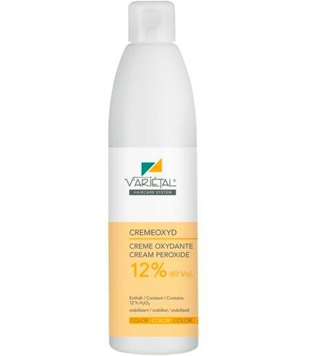 Bevat gestabiliseerd waterstofperoxide. Geschikt voor alle ontkleuringen en haarverven. Voor de professional. Bijzonder toepassingsveilige kleuringsprofessionals kunnen als volgt te werk gaan: Topkleuring vanaf 30 % wit 6 % 1 : 1, donkerder tint 6 % 1 : 1, dezelfde tint 6 % 1 : 1, tot 1 tint lichter 6 % 1 : 1, vanaf 12 tinten lichter 9 % 1 : 1, tot 3 tinten lichter 12 % 1 : 1. Extra blonde kleuring V'ARIÉTAL Extra Blond wordt bereid in een verhouding van 1 : 2 met V'ARIÉTAL Crème Oxide. Tot 3 tonen lichter 9 % 1 : 2, 4 tot 5 tonen lichter 12 % 1 : 2. Opmerking: Reeds gekleurd haar (kunstmatige kleurpigmenten) kan niet worden opgelicht met V'ARIÉTAL VARICOLOR. ...