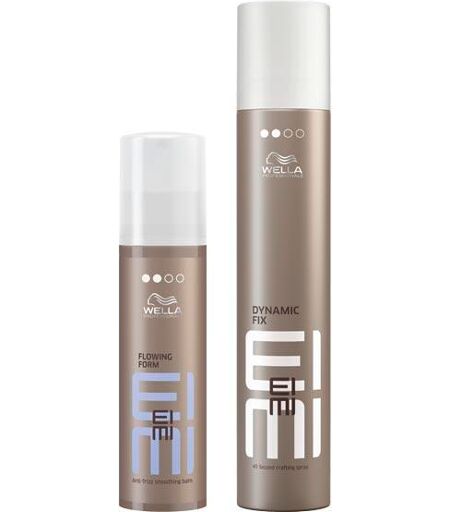 De Wella Stylingstories Summer Day Style Extra-Twist bevat: 1 x Wella EIMI gladde vloeiende vorm, 100 ml1 x Wella EIMI Fixing Hairspray Dynamic Fix, 300 ml WELLA EIMI SMOOTH FLOWING FORM: Zorgt voor heerlijk glad haar en geeft flexibele fixatie. Deze professionele gladmakende balsem vermindert kroezen en maakt levendige kapsels met natuurlijke beweging mogelijk. EIMI Anti-Frizz Balm is ontworpen om het haar te helpen beschermen tegen beschadiging door hitte tijdens het stylen. Houd niveau 2 vast. Toepassing: Breng 2 tot 5 pompjes EIMI Flowing Form aan op het haar en verdeel het grondig in de lengten en punten. Föhnen en stylen met een stijltang voor een nog gladder resultaat. WELLA EIMI FIXING HAIRSPRAY DYNAMIC FIX: 45-seconden modelleerspray met hittebescherming. Met EIMI Dynamic Fix bereikt u een perfecte styling in slechts 45 seconden! Zo lang blijft je haar kneedbaar en flexibel voordat de stijl wordt vastgezet. De professionele haarlak beschermt uw haar ook tegen vochtigheid, hitte en UV-straling. Voor creatieve stijlen waar je van houdt. Houd niveau 2 vast. Toepassing: Houd EIMI Dynamic Fix op een armlengte afstand en spray op droog haar. Vorm het kapsel naar wens. Laat je creativiteit de vrije loop en boetseer een opvallende stijl of trek het kapsel met je vingers. Droogt binnen 45 seconden. ...