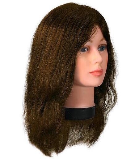 Hoofd met echt haar en natuurlijke haarval. Haarlengte ca. 30-35 cm. Gebruik: knippen en kleuren. ...