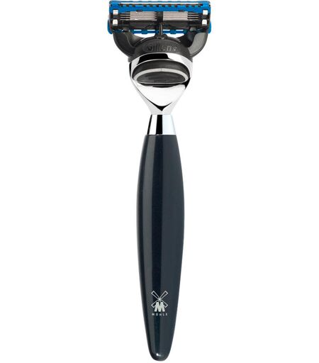 Het scheerhoofd - Gilette® Fusion™ Zacht, veilig en betrouwbaar: De vijf op elkaar gestapelde mesjes van Gillette® Fusion™ zorgen voor een gladde en grondige scheerbeurt die ook zacht is voor de huid. Een iets verder naar buiten geplaatst mesje zorgt voor precieze contouren, terwijl de comfortmesjes voor een nog gladder resultaat zorgen. Dankzij de eenvoudige en veilige bediening is dit systeem ideaal voor nieuwkomers en overal in de winkel verkrijgbaar. Alle MÜHLE scheermesjes in dit systeem zijn ook compatibel met Gillette® SkinGuard, Gillette® Proglide en Gillette® Intimate. Als Gillette® Trusted Partner gebruikt MÜHLE alleen originele accessoires. (Gillette® originele onderdelen) Het materiaal - edelhars Edelhars is een hoogwaardige kunststof waarvan de oppervlakken afzonderlijk worden bewerkt en verfijnd. Het materiaal is ideaal voor exclusieve accessoires en schrijfinstrumenten omdat het een breed scala aan moderne en klassieke ontwerpen in vele aantrekkelijke kleuren mogelijk maakt. De esthetische basisvormen voor penseel- en scheermesheften worden eerst bewerkt uit massieve staven. Elk afzonderlijk werkstuk wordt dan in verschillende gangen gepolijst om het oppervlak een speciale glans te geven. Dit proces geeft de modellen een aangenaam gevoel en zorgt ervoor dat ze jarenlang mooi blijven. Breedte: 45 mmLengte: 139 mm KOSMO Voor iedereen die zich thuis voelt in de wereld, is de KOSMOpolit van MÜHLE de juiste metgezel. De duidelijke designtaal van de KOSMO-lijn wordt geaccentueerd door een opvallende chromen hals. Karaktervolle materialen, zoals eeuwenoud moeraseik of expressief olijfhout, geven deze moderne designserie net dat beetje extra. Voor kosmopolieten met een voorliefde voor zwart zijn de borstels, scheermessen en schaven ook verkrijgbaar in klassieke kleuren. ...