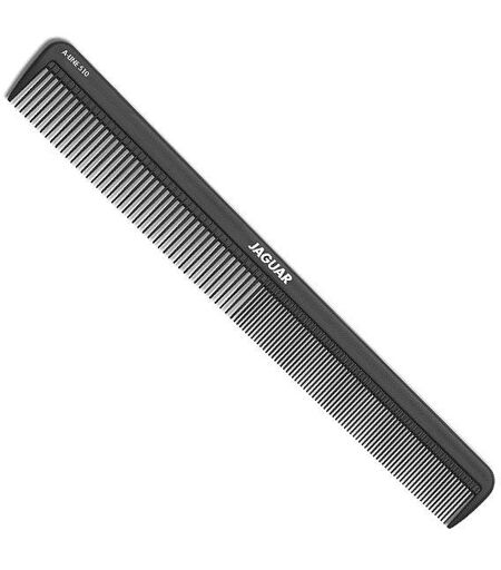 8½" Universele kam, statisch vrij. Jaguar A-Line Ionic comb series. Natuurlijke stoffen in het materiaal geven ionen af bij het kammen. Deze helpen het haar om vocht op te nemen en geven het een gezonde en verzorgde glans. De extra ronding van de tanden is zacht voor haar en hoofdhuid. Oppervlak zwart, mat, antistatisch. ...