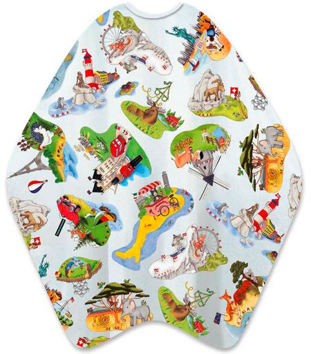 Eenmaal rond de wereld met de liefdevol geïllustreerde kindercape. Het bezoek aan de kapper wordt een spannende ontdekkingsreis. ademendgemakkelijk te reinigen, machinewasbaar tot 30 °C2-weg haaksluiting, traploos verstelbaarafmeting 90 x 125 cm100 % polyester ...