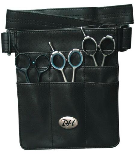 Zwarte kunstlederen tas met buikriem. Ruim voor het opbergen van scharen en gereedschap.9 extra zakkenafmeting: 18,5 x 16 cmLevering zonder inhoud ...