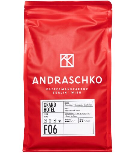en is ideaal om te bereiden als filterkoffie of caffè crema. De filterkoffie kan ideaal worden bereid in een French Press, in een filter of in een portafilter. Andraschko creëert sinds 2006 de fijnste koffiespecialiteiten en combineert kwaliteit, duurzaamheid en smaak in zijn uitgelezen assortiment. ...