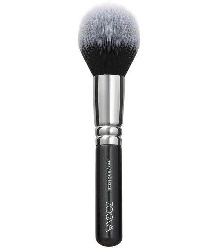 De zijdezachte ZOEVA 119 Bronzer Brush tovert een zonovergoten, stralende look tevoorschijn en zorgt voor een gelijkmatige, streeploze bronzer. Dankzij zijn ronde, pluizige vorm en een veganistische monoharige mix neemt het de juiste hoeveelheid poeder op en brengt het met gemak aan, zelfs over foundation. Toepassing: Gebruik deze kwast om bronzer aan te brengen op de jukbeenderen, de slapen en het voorhoofd.Creëer een zacht, zacht effect of vervaag overgangen met vegende bewegingen.Ideaal voor vloeibare en crème bronzers en poederbronzers. Goed om te weten: Traditioneel handgemaakt met hoogwaardige componenten.Luxueus zacht borstelhaar dat de prestaties van echt haar nabootst.Houten handvat 100% afkomstig uit duurzame bossen.Veganistisch en wreed. ZOEVA's nieuwe Soft-Vegan-Performance™ haarmix is speciaal ontwikkeld voor poederkwasten. Dit is een witte drievezelige haarmix van zuiver synthetisch haar dat de prestaties van menselijk haar 100% imiteert. Elke vezel vervult een andere taak voor de gecontroleerde opname en afgifte van poederproducten. Zo zorgt de langhoudende Soft-Vegan-Performance™ haarmix voor vlekkeloze make-upresultaten met alle poedertexturen en een zacht, volumineus borstelhaargevoel. ...