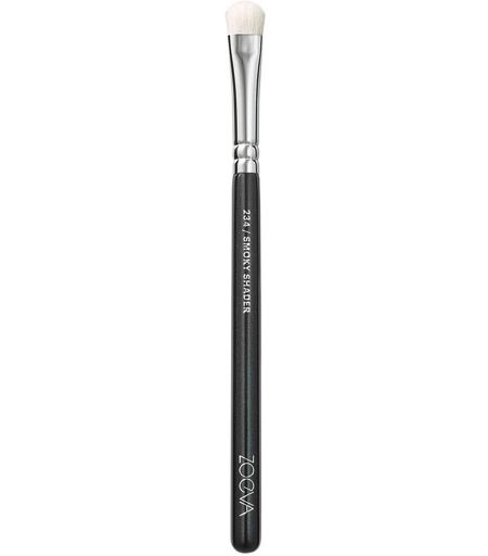 De ZOEVA 234 Smoky Shader Brush is essentieel voor smoky eye looks. Gebruik deze dichte, peddelvormige held om een gelijkmatig en sterk gepigmenteerd kleurresultaat te creëren in het midden van het ooglid. ZOEVA's innovatieve Soft-Vegan-Performance™ haarmix absorbeert gemakkelijk kleur en helpt de kleurintensiteit op te bouwen. Dit penseel kan ook worden gebruikt om zachtjes overgangen te tekenen of een rokerige schaduw te creëren op de onderste wimperlijn. Toepassing: Gebruik de platte kant langs de punt van het penseel om de oogschaduw aan te brengen en te intensiveren.Maak uw eyeliner nauwkeurig of veeg met bewegingen langs de wimperlijn voor een elegante smoky eye look.Ideaal voor alle losse en geperste poederoogschaduw of oogschaduwpigmenten. Goed om te weten: Traditioneel handgemaakt met hoogwaardige componenten.Luxueus zacht borstelhaar dat de prestaties van echt haar nabootst.Houten handvat 100% afkomstig uit duurzame bossen.Veganistisch en wreed. ZOEVA's nieuwe Soft-Vegan-Performance™ haarmix is speciaal ontwikkeld voor poederkwasten. Dit is een witte drievezelige haarmix van zuiver synthetisch haar dat de prestaties van menselijk haar 100% imiteert. Elke vezel vervult een andere taak voor de gecontroleerde opname en afgifte van poederproducten. Zo zorgt de langhoudende Soft-Vegan-Performance™ haarmix voor vlekkeloze make-upresultaten met alle poedertexturen en een zacht, volumineus borstelhaargevoel. ...