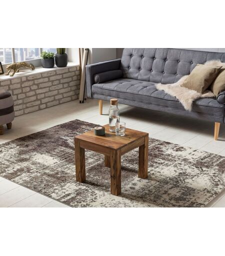 Vierkante bijzettafel / salontafel van sheesham hout gecombineerd met blokpoten Deze salontafel sheesham is leverbaar in de afmeting (bxdxh): 45 x 45 x 40 cm Kleur: bruin Materialen:  Tafelblad en poten van sheesham hout Sheesham hout vindt zijn oorsprong in India en Vietnam. Het betreft een duurzame houtsoort en heeft een kenmerkende 'vlammende' uitstraling. Het betreft een natuurproduct, kleurafwijkingen en... ...