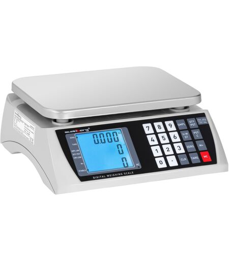 Met de telweegschaal kunt u de hoeveelheid bepalen op basis van gewicht - of u nu schroeven, snoepjes of andere stukgoederen telt die u dagelijks verhandelt of verwerkt. Vanwege de hoge meetnauwkeurigheid kunnen zelfs kleine goederen in grote hoeveelheden worden bepaald - in industriële productie of in inventaris. De digitale telweegschaal is uiterst nauwkeurig, met een nauwkeurigheid van 1 gram voor een maximale belasting van 30 kilogram. De gemeten waarden voor het totale gewicht, het gewicht per eenheid en het aantal eenheden worden duidelijk weergegeven op de 3 grote LCD-schermen net onder het weegplatform. De cijfers van 16 millimeter hoog zijn duidelijk leesbaar. Het duidelijk ontworpen bedieningspaneel is eenvoudig te gebruiken. Alle basisfuncties zoals tarra, opslaan of toevoegen kunnen direct worden geselecteerd. De voorraadschaal heeft 99 geheugenplaatsen voor een gemakkelijke bediening. Afhankelijk van uw vereisten, kunt u kg of lb als eenheid kiezen. Het weegoppervlak is gemaakt van robuust, onderhoudsarm roestvrij staal en meet 22.3 x 17.4 centimeter, waardoor er voldoende ruimte is voor goederen van verschillende afmetingen. De antislip en in hoogte verstelbare voeten zorgen voor een stabiele en vlakke voet. Met een geïntegreerd waterpas kunt u controleren of de weegschaal horizontaal waterpas staat voordat u weegt. Het display van de weegschaal wordt gevoed door een batterij, waardoor het ook geschikt is voor mobiel gebruik. Het heeft een ongelooflijke batterijduur van maximaal 72 uur. Er verschijnt een waarschuwing voor een bijna lege batterij op het display wanneer de batterij moet worden opgeladen. De weegschalen zijn gemaakt van hoogwaardige materialen voor maximale duurzaamheid en kwaliteit. De behuizing van het display is gemaakt van stevig ABS-plastic, terwijl het weegplatform is gemaakt van veerkrachtig roestvrij staal. ...
