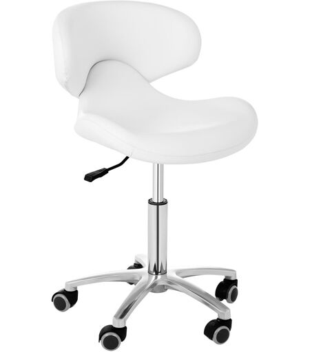 Er zijn veel beroepen waarvoor en situaties waarin u vaak moet zitten. Of het nu in de kapsalon, schoonheidssalon, op kantoor of zelfs in een dokterspraktijk is. Een mobiele en toch comfortabele rolkruk met rugleuning vindt u in het model ANDRIA WHITE van Physa. De directe overgang tussen de zitting en de rug ondersteunt de onderrug en zorgt voor een gezonde houding. De rolkruk wordt ook gekenmerkt door hoogwaardige afwerking en bijzondere lange levensduur. Het middelpunt van de draaibare kapperskruk is de zitting met een zitvlak van 47 x 45 centimeter. De afwerking en materialen voldoen aan de hoogste kwaliteitsnormen. De als voering gebruikte schuimstof is zowel zacht als vormvast, zodat u ook langer comfortabel op de kruk kunt zitten. Ook de eveneens gestoffeerde rugleuning verhoogt het zitplezier. De schuimvulling is bedekt met synthetisch leer, dat nauwkeurig is gestikt en de voering kreukloos omhult. De rolkruk biedt maximale flexibiliteit dankzij de soepel lopende wieltjes, die stil en wendbaar over de grond kunnen rollen. Aan het vijf-potige onderstel zitten vijf verwisselbare wielen. De kapperskruk kan 360 graden worden gedraaid en biedt onbeperkte bewegingsvrijheid voor alle activiteiten die moeten worden uitgevoerd. Afhankelijk van de werkplek en de klant kunt u de rolkruk instellen tussen een zithoogte van 45 tot 59 cm. Hiervoor is aan de zitting een intuïtief te bedienen greep bevestigd, waarmee u snel en gemakkelijk door middel van gasdruk de juiste hoogte voor u kunt instellen. Ook de gasdrukveer biedt een bijzonder comfortabele, gedempte zitpositie. De gebruikte materialen, kunststof en staal, zijn gemakkelijk te reinigen. De kunststoffen hoes van de kapperskruk is stof- en waterafstotend, waardoor het minder vies wordt tijdens het werk. U kunt dus gerust met vloeibare of stoffige stoffen werken, zonder de kruk hiermee te beschadigen. Ondanks het compacte, stijlvolle ontwerp, is de rolkruk zeer stevig en heeft deze een maximale belasting van wel 150 kilogram. De gepolijste stalen elementen en de zwarte kleur geven de stoel een tijdloze elegantie die past in elke omgeving. ...
