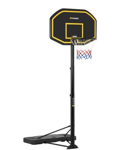 Of het nu op de speelplaats, op de oprit of op het schoolplein is, de weerbestendige basketbalpaal GR-BS11 van Gymrex, uw experts voor sport en gezondheid, is in een mum van tijd opgezet en is erg leuk voor jong en oud. En wie weet? Misschien heb je een toekomstige NBA-ster die driepunters maakt in de buurt van uw garage! Basketbal is niet alleen een indoor sport met de duurzame draagbare basketbalstandaard gemaakt van stevige stalen buizen en met een kunststof bord van 109 x 71 cm. Het rode, witte en blauwe net is gemaakt van veerkrachtig nylon en is bestand tegen zon, wind en regen en is een eerbetoon aan de VS, waar de populaire sport in 1891 werd uitgevonden. Met de stelschroef verstel je de hoogte van de standaard in enkele seconden probleemloos van 200 tot 305 cm. Dit geeft zelfs je jongste aanstormende talenten betere kansen om te scoren en een positief gevoel van prestatie. De maximale hoogte van 3,05 m en de ringdiameter van 45 cm voldoen exact aan de internationale voorschriften. Dit betekent dat jij, je kinderen of je teamgenoten onder dezelfde omstandigheden spelen als 's werelds beste professionele spelers. Of het nu één-op-één is of een teamwedstrijd, de basketbalringstandaard is geschikt voor alle soorten spellen en is het ideale trainingsapparaat voor zowel beginners als professionals. De basis van het draagbare basketbalnet kan worden gevuld met maximaal 60 kg water of zand voor extra stabiliteit om zelfs een slam-dunk te weerstaan. Door de standaard op te tillen, kunt u na de wedstrijd de hele constructie op de twee stevige wielen ...