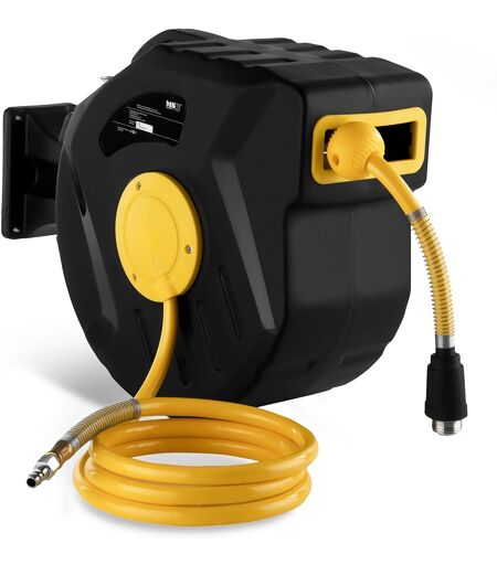 Met de automatische persluchtslanghaspel PRO-A 20 verlengt u de afstand tot 20 meter tussen de bron van de persluchttoevoer, bijvoorbeeld een compressor, en het ontvangende apparaat. Of je nu aan het werk bent in huis, in de tuin of in de werkplaats, elke klusser en doe-het-zelver vindt met de elektrische gereedschappen van MSW het juiste gereedschap. Gedraaide persluchtslangen en vervelend oprollen behoren tot het verleden, voortaan zorgt het automatisch oprollen van de persluchtslanghaspel voor orde. Door de slimme constructie wordt de slang bij het intrekken in lagen opgerold. Bij het afrollen van de persluchtslang grijpt de trommel twee tot drie keer per m aan, zodat u altijd de gewenste slanglengte kunt afwikkelen. De persluchtslanghaspel is een belangrijk instrument bij het werken met persluchtgereedschap en is bestand tegen drukken tot 18 bar. Met de 20 m lange persluchtslang bereikt u een groter bereik en dus meer mobiliteit. Bovendien kan de slanghaspel flexibel 180° worden gedraaid. De houder voor de persluchtslanghaspel is zeer eenvoudig te monteren aan een plafond of wand. De benodigde montageaccessoires zijn bij de levering inbegrepen. De trommel draagt ook bij aan de arbeidsveiligheid. De 20 m lange persluchtslang is veilig opgeborgen in de gesloten kunststof behuizing en beschermd tegen slijtage. ...