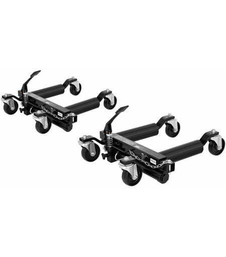 Met de hydraulische voertuigverplaatser MSW-HRH-680 kunnen voertuigen moeiteloos aan de banden worden opgehesen, en in elke positie worden gerangeerd. Deze set bestaat uit twee professionele voertuigverplaatsers en is ontworpen voor een bandbreedte van 12 inch (30 cm). De voertuigverplaatser wordt graag gebruikt in werkplaatsen, in de racesport en door autohandelaren. Of het nu thuis of op het werk is, voertuig- en hijsgereedschap van MSW verrijkt elke werkplaats. De voertuigverplaatser van MSW is ontworpen om voertuigen gemakkelijk te verplaatsen. Het hijswerktuig kan tot wel 680 kg heffen. Als u vier stuk tegelijkertijd gebruikt, kunt u zelfs 2.720 kg verplaatsen. Met het hydraulische voetpedaal wordt het voertuig voorzichtig opgepompt totdat het desbetreffende wiel vrij zweeft. Het aanpassingsbereik ligt tussen 380 en 660 mm. Deze set bestaat uit twee voertuigverplaatsers. Onder de voertuigverplaatser zitten vier soepel lopende nylon zwenkwieltjes. Deze zorgen ervoor, dat deze gemakkelijk en geruisloos in alle richtingen beweegt. Om te voorkomen dat de voertuigverplaatser wegrolt, is er de pedaalvergrendeling. Bovendien heeft de voertuigverplaatser een veiligheidspin, die met een ketting aan het gereedschap bevestigd is. Deze voorkomt dat de voertuigverplaatser tijdens het gebruik samenklapt. Verder beschikt de voertuigverplaatser over zachte PVC-pads, die de banden tijdens het hijsen beschermen. De hydraulische voertuigverplaatser is gemaakt van hoogwaardig staal. Dankzij de compacte afmetingen, het lichte gewicht en de manoeuvreerbare nylon wieltjes, is dit hulpmiddel gemakkelijk te transporteren en op te bergen. ...