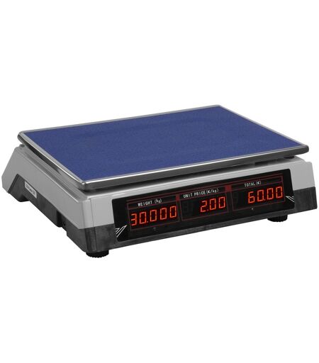 De controleweger SBS-PW-302W levert bijzonder nauwkeurige meetresultaten, heeft een maximaal weegvermogen van 30 kg en een nauwkeurigheid van 2 g. De weegschaal is daarom ideaal voor werkzaamheden in verschillende toepassingsgebieden waarbij het productgewicht wordt gecontroleerd. In het assortiment van Steinberg vindt u hoogwaardige industriële benodigdheden en nauwkeurige weegschalen voor alle soorten taken. Niemand heeft tegenwoordig tijd en daarom wilt u snelle, nauwkeurige weegresultaten krijgen. De weegschaal van de controleweger geeft de resultaten direct weer en het display reageert onmiddellijk, zelfs als het op nul wordt gezet. De weegschaal beschikt over zes LED-displays. Het bijzondere aan de controleweger is dat deze aan de achterzijde zogenaamde klantendisplays heeft. Hierdoor kunnen uw klanten altijd in één oogopslag de juiste meetwaarden zien. Het weegresultaat, de eenheidsprijs en de totale kosten kunnen worden weergegeven. Dankzij de achtergrondverlichting kun je op het display ook op donkere locaties comfortabel werken. De elektronische weegschaal heeft verschillende praktische functies. Met de tarrafunctie bepaalt u het nettogewicht van een object zonder verpakkingsmateriaal en met de PCS-functie is het mogelijk om individuele objecten (25, 50, 75 of 100 stuks) te tellen. Wanneer de automatische nulpuntcorrectie is geactiveerd, geeft de weegschaal altijd een stabiel nulpunt aan, bijvoorbeeld wanneer de kamertemperatuur verandert. Om een lange levensduur te garanderen, is de controle weegschaal uitgerust met een geïntegreerde batterij, die een werking van maximaal 40 uur mogelijk maakt. Zelfs tijdens het laden kunt u gemakkelijk werken met de weegschaal. Wanneer de weegschaal niet wordt gebruikt op batterijvoeding, wordt de energiebesparende modus na 10 seconden ingeschakeld, waardoor de batterij wordt beschermd en energie wordt bespaard. Verder is een batterijwaarschuwing geïntegreerd. Wanneer het batterijniveau laag is, geeft het display een grafisch symbool weer dat u op de hoogte brengt van de noodzaak om op te laden. De controle weegschaal heeft nog een waarschuwing, de indicator voor overbelasting. Als de schaal wordt overschreden, wordt u op de display gewaarschuwd met een pieptoon en een symbool. Het toetsenbord wordt gekenmerkt door zijn water- en vetbestendigheid. Wanneer u objecten weegt, kunt u de toetsen 0 tot 9 gebruiken om de prijs per eenheid in te voeren, bijvoorbeeld €/kg waarna de weegschaal de totale prijs berekent. Dankzij de robuuste rubberen poten heeft de weegschaal altijd een veilige en slipbestendige stand en beschermen de poten uw werkoppervlak tegen krassen. De weegschaal heeft een zeer groot afneembaar roestvrijstalen weegoppervlak met de afmetingen van 33 x 24 cm. Bij het ontwerpen van de controle weegschaal SBS-PW-302W werd veel belang gehecht aan een compact ontwerp. De compacte totale afmetingen van 33 x 35 x 12 cm, evenals het lage gewicht van het apparaat van 4,3 kg, zorgen voor de eenvoudige... ...