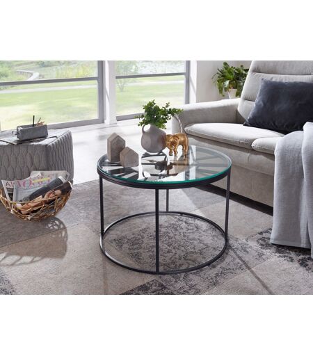 Moderne design salontafel voorzien van doorzichtig tafelblad van helder glas gecombineerd met decoratieve gouden wijzerplaat en metalen accentten. Deze salontafel is verkrijgbaar in de afmeting: 60 x 60 x 43 cm Overige informatie: Maximaal toelaatbaar gewicht tafelblad 20 kg Tafel wordt geleverd op basis van zelfmontage Wijzerplaat is alléén decoratief  Kleurcombinatie: Frame in zwarte kleur met... ...