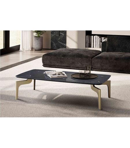 Moderne trendy salontafel met tafelblad van MDF met marmerlook zwarte uitstraling gecombineerd met goudkleurige metalen poten.De tafel is verkrijgbaar in de afmeting LxBxH:120 x 60 x 30,5 cmKleurcombinatie: Tafelblad zwart marmerlookPoten goudkleurigMaterialen:Tafelblad van MDF Poten van metaal poedercoating ...