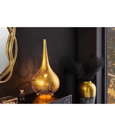 Moderne tafellamp in Oriëntaalse woonstijl uitgevoerd in metaal met subtiel en sfeervol armatuur met gaatjes waardoor er een mooi lichteffect ontstaat . Afmeting BxDxH 26 x 26 x 52 cmBijzonderheden:Lengte snoer 230 cmAdvies lichtbron 1x E27 max 25 WattMateriaal: metaal ...