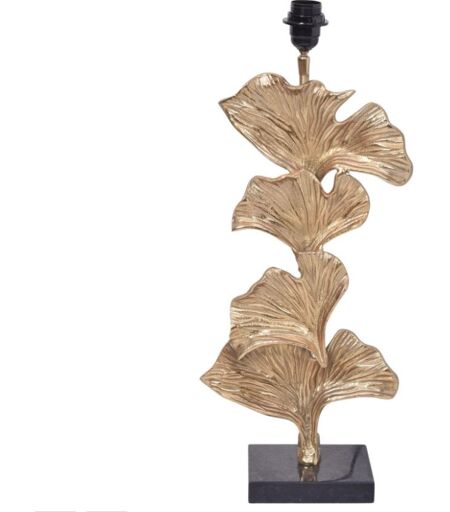 Sfeervolle eyecatcher tafellamp met skulptuur in de vorm van een ginkgo blad gecombineerd met voet van marmer.Afmetingen BxDxH:Afmeting tot onderzijde lampenkap 41 cmSnoerlengte 200 cmVoet 15 x 15 x 3 cmBijzonderheden: Benodigde fittingen: 1 stuks E27 max 60 WattFitting niet inbegrepen in prijsKleurcombinatie:Ginkgo blad goudkleurigVoet: zwartMaterialen:voet: marmer  ...