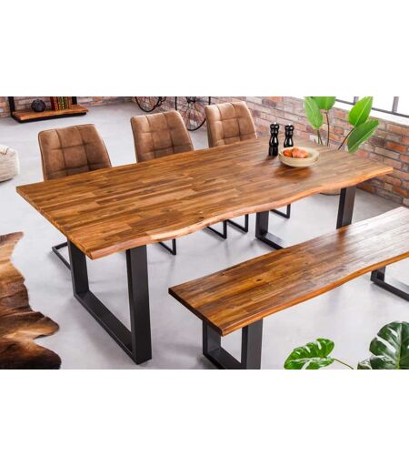 Moderne boomstam tafel acacia met 35 mm sterk massief houten geolied tafelblad en gecombineerd met antraciet stalen frame van 8x4 cm. Het tafelblad is aan de lange zijden afgewerkt met afgeronde boomzijkanten Deze boomstam tafel acacia is verkrijgbaar in de afmeting: 160 x 90 x 76 cm Kleurcombinatie: Tafelblad bruin naturel (donkere & lichte natuurlijke houtpatronen) Frames in antraciet grijs Materialen: Tafelblad van massief... ...
