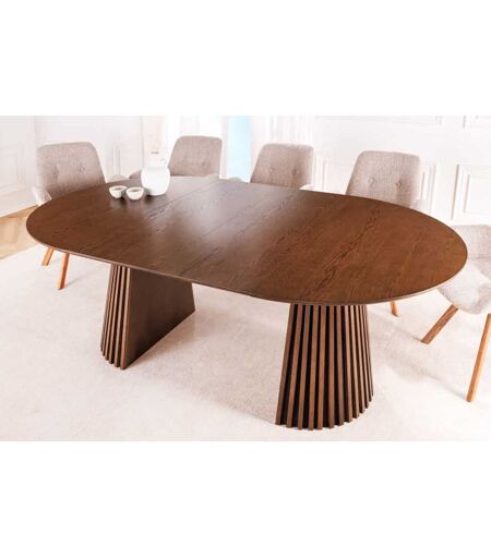 Uitschuifbare ronde tafel donkerbruin eiken kleur 120-200 cm