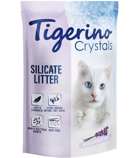 Tigerino Crystals Lavendel silicaat kattenbakvulling met heerlijke lavendelgeur! Extreem absorberend ...