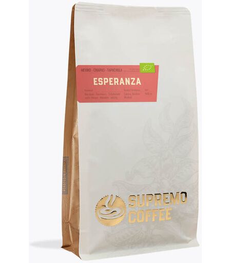 van een bijzonder langzaam proces dat door insiders "Cast Iron Slow Roast" wordt genoemd. Supremo Esperanza Organic kan worden gedronken als zwarte koffie, cappuccino of latte macchiato. De biologische koffie kan ook worden bereid als filterkoffie of met een French Press, percolator of volautomaat. ...