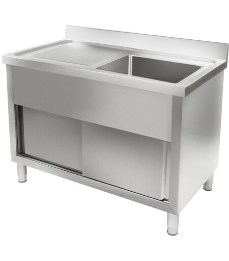 De keukenunit RCHS-1200WS van Royal Catering biedt het perfecte werkoppervlak voor het wassen van voedsel, het reinigen van alle soorten gerechten en het bewaren van verschillende gebruiksvoorwerpen. De keukenunit ondersteunt werknemers in restaurants, hotels, bars of kantines, evenals cateringdiensten. De unit heeft een gootsteen, 2 schuifdeuren en een druppeloppervlak. Het is een goede aanvulling op elke keuken. Door de solide stalen constructie van het keukenblok is het materiaal duurzaam en volledig vrij van vuil of watervlekken. De natuurlijke inertie van het edelmetaal beschermt tegen onzuiverheden en is zeer hygiënisch. De 30 cm diepe roestvrijstalen spoelbak met ruime afmetingen biedt zelfs groot keukengerei, zoals bakplaten en kookpotten. Aan de linkerkant van de gootsteen bevindt zich een werkoppervlak dat kan worden gebruikt voor het droogzetten van gerechten. Het keukenblok kan worden gebruikt voor het bereiden van gerechten en is daarna zeer eenvoudig te reinigen . Twee praktische schuifdeuren zorgen ervoor dat het apparaat ook in kleine keukens kan worden gebruikt. Het keukengerei wordt veilig en hygiënisch achter twee schuifdeuren opgeborgen. De schuifdeur kan gemakkelijk worden geopend en gesloten. De structuur heeft een versterkte grondbasis. Een stalen verhoogde rand van het werkblad van 10 cm wordt aan de muur gemonteerd en sluit de opening tussen het werkoppervlak en de muur, wat vooral handig is bij oneffen muren. Het beschermt de muur en omgeving tegen watervlekken en vocht. Een inzetbare zeef zorgt ervoor dat de afvoer niet verstopt raakt met voedselverspilling. De zeef kan worden gereinigd met warm zeepsop. De afgeronde randen beschermen tegen verwondingen. De afvoer bevindt zich in het midden van de gootsteen en garandeert daardoor een optimale afvoer van het water. Het keukenblok heeft in hoogte verstelbare poten die zorgen voor een stevige voet op een oneffen bodem. De in hoogte verstelbare standaards maken ook een eenvoudigere reiniging onder de unit mogelijk. De spoelbak heeft geen voorgeboorde plekken voor mengkranen. Ze kunnen afzonderlijk aan de randen worden geïnstalleerd. Een handleiding voor montage en installatie van de kast is bijgevoegd. Het keukenblok RCHS-1200WS van Royal Catering is een elegante oplossing voor elke keuken. ...