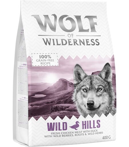 Probeer nu! Wolf of Wilderness Droogvoer, Enkele Blikken & Snacks - Wild Hills - Eend 400 g droogvoer