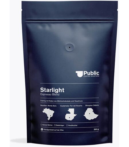 een unieke smaak van romige chocolade gecombineerd met een zachte donkere hazelnoottoets. De espresso wordt met de hand gebrand in Hamburg en is verkrijgbaar als hele boon of gemalen voor piston en fornuiskoffiezetapparaten. Zo wordt elke koffie een echte traktatie met je favoriete bereidingswijze. ...
