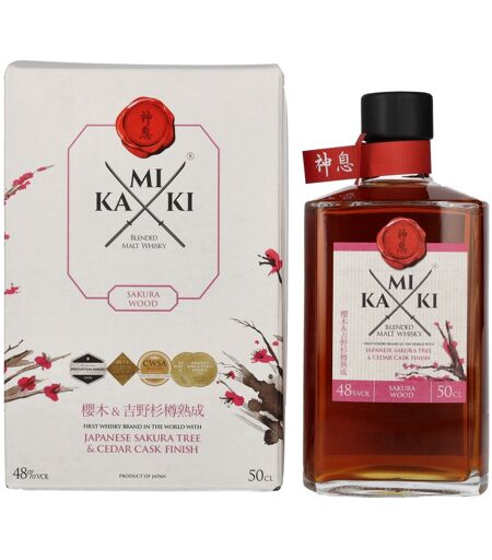 Deze blended malt whisky komt uit het sterk spirituele land Japan. Met deze whisky vieren de producenten Japanse traditie en vakmanschap. De naam is samengesteld uit "KAMI" en "IKI" wat "GOD" en "ATEM" betekent. De Kamiki Sakura botteling is de e Kleur: Rijk goud. Neus: Rijpe bananen, gekonfijte kastanjes, kaneel, hints van dennen. Smaak: Warm, bloemig, hout, sandelhout, kruiden, zoete kersen. Afwerking: Langdurig. (automated translation) ...