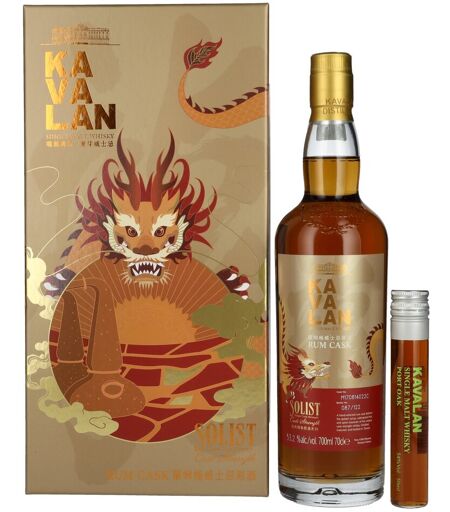 Kavalan Whisky Kavalan SOLIST RUM CASK Single Malt Whisky Dragon Edition 53,3% Vol. 0,7l in geschenkverpakking met 0,05l Miniatur