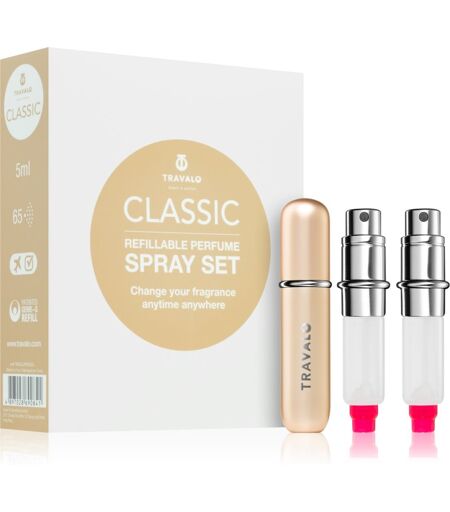 Travalo Classic HD, , Hervulbare geurverspreiders Unisex, Heb je je favoriete parfum het liefst steeds bij de hand, maar wil je niet de hele flacon meenemen? Dan is de navulbare Travalo Classic HD parfumverstuiver een ideale oplossing. Je pompt je geur er in een paar seconden in over, zodat je hem overal bij je kan dragen. Om je geur comfortabel mee te nemen zonder morsen; groot genoeg om voldoende parfum in te doen en klein genoeg om in elke handtas te passen. Inhoud van de set: Gold navulbare parfum verstuiver 5 ml verpakking voor navulbare parfumverstuiver ...