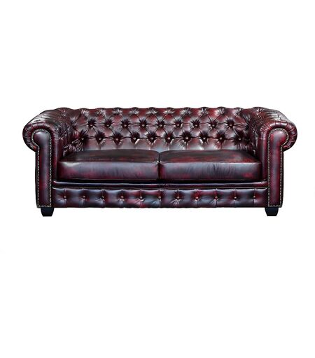 Unique Driezitsbank Chesterfield BRENTON 100% buffelleer - cherry