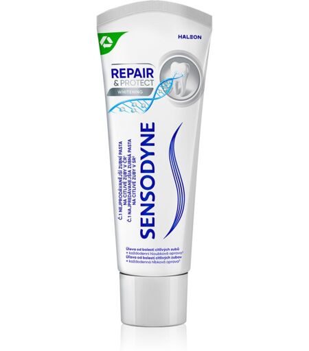 Sensodyne Repair & Protect Whitening, 75 ml, Whitening tandpasta Unisex, De tandpasta Sensodyne Repair & Protect Whitening is bedoeld voor zacht tanden bleken. Verwijdert effectief ongewenste pigmentatie van de tanden en beloont je bij regelmatig gebruik met een nog stralender glimlach. Kenmerken: vermindert de gevoeligheid van de tanden bestrijdt tandbederf en tandplak versterkt de tanden houdt de ademhaling fris bleekt tanden Hoe te gebruiken: Gebruik minimaal 2 keer per dag. Poets je tanden grondig minstens 2 minuten lang. ...