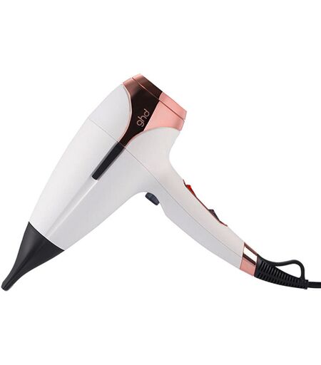Een baanbrekende nieuwe innovatie van ghd's meest vooraanstaande fysici, ingenieurs en stylingprofessionals - ontdek ghd helios® voor ultieme stylingcontrole en 30% meer glans. Deze professionele haardroger is uitgerust met de unieke Aeroprecis™-technologie, die een luchtstroom van 120 km/u genereert via zijn duurzame borstelloze gelijkstroommotor. Deze krachtige maar precieze luchtstroom, gericht op interne aerodynamica, stelt je in staat om snel en gecontroleerd te stylen. Lichtgewicht en ergonomisch uitgebalanceerd voor comfortabel stylen, gekoppeld aan op maat gemaakte akoestische technologie die zorgt voor lage geluidsniveaus, is de ghd helios® ontworpen voor gebruiksgemak en resultaten van salonkwaliteit. Aeroprecis TM Technologie: Aeroprecis is een combinatie van 4 afzonderlijke technologieën. Daartoe behoren het interne aërodynamische ontwerp en een speciaal professioneel mondstuk dat een nauwkeuriger richten en gebruik van lucht mogelijk maakt. Dit resulteert in een meer geconcentreerde, gelijkmatige luchtstroom en temperatuurverdeling. Langere levensduur met borstelloze motor voor haardrogen van salon-kwaliteit met een luchtstroom van 120 mph.Aeroprecis™ technologie zorgt voor een intuïtieve styling met meer precieze controleVariabele temperatuur- en snelheidsinstellingen, inclusief knop voor koude luchtlicht van gewicht door ergonomisch ontwerpaangepaste akoestische systeemtechnologie, voor een laag geluidsniveau tijdens het stylen3 m lang snoer ...