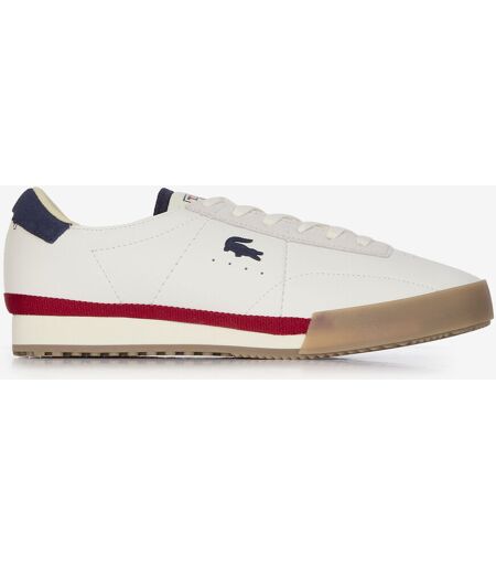Ontdek de perfecte combinatie van retro en moderniteit met de Lacoste Aura. Deze sneakers hebben een laag silhouet in wit leer, geaccentueerd door een rode streep en een marineblauwe hiel. De transparante rubberen zool zorgt voor een originele touch. De beroemde krokodil is subtiel aan de zijkant te zien, symbool van een onnavolgbare identiteit. ...