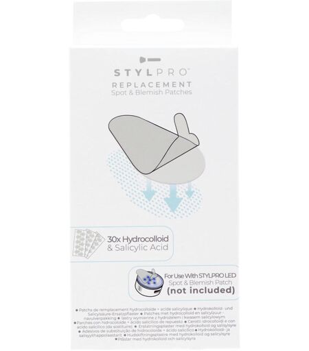 De STYLPRO Hydrocolloid & Salicylic Acid Replacement Patches zijn ontworpen om onzuiverheden op te nemen voor een helderdere, egalere teint. Ze zijn ontworpen voor gebruik met de STYLPRO LED Spot & Blemish Patch (apart verkrijgbaar). Inhoud: 30 stuksHydrocolloïde & salicylzuurTransparant en discreet ontwerpGemakkelijk op te plakken en af te halenKan 's nachts gedragen wordenGeschikt voor de STYLPRO LED Patch DeviceHelpt oneffenheden zichtbaar te verminderenAbsorbeert onzuiverhedenOndersteunt de regeneratie van de huidGemakkelijk in gebruikBeschermt de huid tegen uitknijpenGeschikt voor acne, mee-eters en puistjesPraktisch voor gebruik thuis of op reis ...