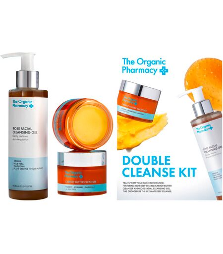 Transformeer je huidverzorgingsroutine. De kracht van dit duo van onze best verkopende reinigers Carrot Butter Cleanser + Rose Facial Cleansing Gel biedt de ultieme dieptereiniging in twee stappen - voor je mooiste huid. De Organic Pharmacy Double Cleanse Kit bevat: 1 x Carrot Butter Cleanser, 50 ml1 x Rozen gezichtsreinigingsgel, 200 ml Carrot Butter Cleanser: De balsem-naar-olie cleanser verwijdert onzuiverheden en make-up op milde wijze voor een frisse, stralende huid. De cleanser is rijk aan plantaardige oliën en antioxidanten en lost onzuiverheden gemakkelijk op, zelfs waterproof make-up, voor een stralende teint. Een aromatisch geurende, vaste, boterachtige balsem verandert bij het aanbrengen in een zijdezachte olie. Toepassing: Verwarm een hoeveelheid ter grootte van een erwt tussen je handpalmen, breng aan op een droge huid en masseer om make-up en onzuiverheden op te lossen. Afnemen met een mousseline doekje en vervolgens combineren met een reiniger op waterbasis voor een grondige dubbele reiniging. Ook geschikt voor de oogcontouren. Rose Facial Cleansing Gel: Een voedende cleanser die zorgt voor een intensieve, grondige reiniging met langdurige hydratatie. Reinigt mild, verzacht roodheid en reinigt effectief zonder de huid uit te drogen. Rozenbottel heeft een beschermende en voedende werking en laat de teint stralen. Combineer met onze mousseline doek voor een maximale reinigingservaring. Toepassing: Meng een kleine hoeveelheid met water, masseer op gezicht en hals en spoel af. Voor een optimaal resultaat afnemen met een mousseline doekje gedompeld in lauwwarm water. Vermijd contact met de ogen. ...