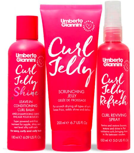 Ontketen de magie van perfect gedefinieerde krullen met het bekroonde Curl Jelly styling trio. Zeg vaarwel tegen kroeshaar en hallo tegen onberispelijke krullen met onze magische, ontwarrende Curl Jelly formule, ontworpen om zelfs de meest weerbarstige golven, krullen en spiralen te temmen! Bescherm je haar tegen beschadiging door hitte met Curl Jelly Shine en definieer je krullen met de best verkopende Curl Jelly Scrunching Jelly. Wanneer je krullen een oppepper nodig hebben tussen wasbeurten door, geeft Curl Jelly Refresh ze direct een nieuwe definitie. Verbeter je haarverzorgingsroutine en geef jezelf of een krullende vriendin glanzende, springerige krullen. De geur is bloemig en kruidig: bloemige lavendel en patchoeli, verrijkt met warme kardemom en romige, delicate vanille. Umberto Giannini Award Winners Giftset bevat: 1 x haargel, 200 ml1 x conditioner, 180 ml1 x haarlak, 150 ml Toepassing: Stap 1: Breng Smooth Curl Jelly Shine 180 ml aan in handdoekdroog haar, concentreer je op de aanzet. Kam door voor een gelijkmatige dekking. Stap 2: breng vervolgens Curl Scrunching Jelly 200 ml aan op de middenlengtes en punten en kam het droog met een diffuser of laat het aan de lucht drogen. Stap 3: Voor een opfrissing halverwege de week spray je Curl Jelly Refresh en scrunch of draai je je krullen naar behoefte. ...