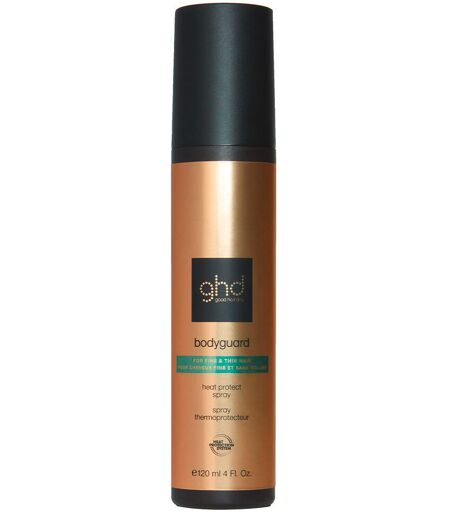 De nummer 1 bestseller, ghd bodyguard - heat protect spray, nu voor fijn en dun haar. Bescherm je natuurlijke volume en krijg voller uitziend haar met ghd bodyguard voor fijn haar. De niet-vette, gewichtloze spray met ghd hittebeschermingssysteem verbetert de handelbaarheid en beschermt fijn haar tegen temperaturen tot 230°C terwijl de diameter van elke haarlok toeneemt*. Verbeterde stylingcontrole maakt het gemakkelijk om klitvrije resultaten te bereiken. Het ghd hittebeschermingssysteem helpt opvliegend haar te voorkomen met de dubbele werking van beschermende polymeren en conditionerende bestanddelen, die het haaroppervlak gladstrijken voor gladder, beter handelbaar haar. De ghd bodyguard heat protect spray omhult en beschermt elke haarlok voor gezonder uitziend en verzorgd haar**. ghd bodyguard - voor fijn haar. Het ideale power koppel in combinatie met ghd chronos™. * vergeleken met natuurlijk gedroogd haar. **Consumententest, 101 vrouwen, april 2020 GHD BODYGUARD - FOR FINE HAIR: de nummer 1 bestseller, ghd heat protect spray op maat gemaakt voor fijn en dun haar. - HITTEBESCHERMING TOT 230°C: het ghd hittebeschermingssysteem biedt een betrouwbare beschermlaag tussen haar en hitte voor warmtestyling zonder angst voor beschadiging. - VULLER LOOKING HAIR: beschermt het natuurlijke volume en vergroot de diameter van elke haarlok*. - WEIGHTLESS SHAPING: met bond-building technologie voor knoopvrije, gewichtloze resultaten. - POWERCOUPLE: het perfecte power koppel met de ghd chronos™ styler. * Vergeleken met natuurlijk gedroogd haar. Gebruiksaanwijzing: Spray in handdoekdroog haar van aanzet tot punten en kam door om het product gelijkmatig te verdelen. ...