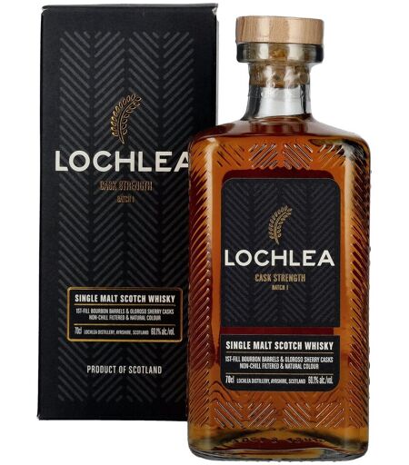 De Lochlea CASK STRENGTH Single Malt Whisky Batch 1 60,1% Vol. 0,7 l + GB is de eerste editie van de cask strength range van de onafhankelijke Lochlea distilleerderij in de Schotse Lowlands. De distilleerderij, die gevestigd is op de voormalige boerd Kleur: Goud met warme koperen reflecties. Neus: Frisse rode appels, vanille, honing, kruidige sherrytonen en licht geroosterde smaken. Smaak: Intens en olieachtig, met mout, zoete karamel, donker fruit, eikenhout en een fijne kruidigheid. Afdro ...