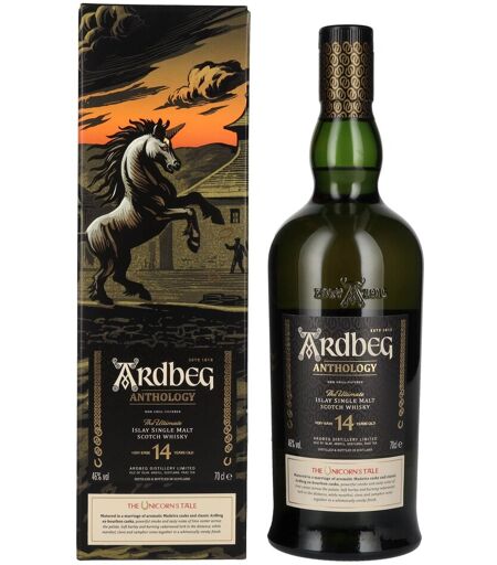 Met Ardbeg The Unicorn's Tale presenteert de legendarische Islay distilleerderij een uitzonderlijke 14 jaar gerijpte limited edition, die deel uitmaakt van de exclusieve Ardbeg Anthology serie. Deze whisky is geïnspireerd op een van Islay's meest gri Kleur: Natuurlijk goud met een amberkleurige tint. Neus: Complex en uitnodigend met gebakken abrikozen, citroenmeringue, gerstesuiker, rookslierten en een vleugje vochtige turf. Smaak: Meerlagig met zoete vanille, droge Madeira, kruidige houttonen, ...
