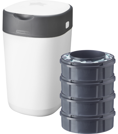 Twist and Click Nappy Bin + 4 Refill Cassettes White ...