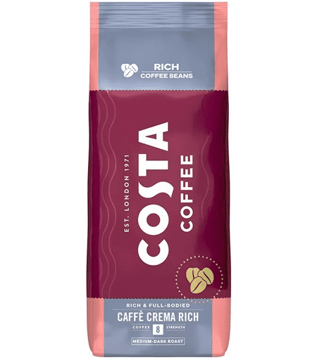 Costa Coffee Caffè Crema Rich - Intense en Volle Smaak Ervaar de rijke en volle smaak van Costa Coffee Caffè Crema Rich, een premium blend van zorgvuldig geselecteerde Robusta bonen uit Azië en Arabica bonen uit ...