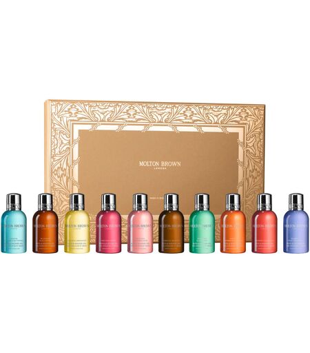 Het perfecte Molton Brown visitekaartje - onze samengestelde introductie van onze tien meest populaire bad- en douchegels, van charismatische, houtachtige iconen tot zonnige citrusgeuren en bloeiende bloemenfavorieten. Deze cadeauset bevat: 1 x Coastal Cypress & Sea Fennel Bath and Shower Gel, 50ml1 x Re-charge Black Pepper Bath and Shower Gel, 50ml1 x Sinaasappel & Bergamot Bad- en Douchegel, 50ml1 x Vurige Roze peper bad- en douchegel, 50ml1 x Heerlijke Rabarber & Roos bad- en douchegel, 50ml1 x Tabak Absolute bad- en douchegel, 50ml1 x Wilde munt & lavandin bad- en douchegel, 50ml1 x Zonovergoten Clementine & Vetiver bad- en douchegel, 50ml1 x Hemelse Gingerlelie Bad- en Douchegel, 50ml1 x Bluebell & Wilde Aardbei bad- en douchegel, 50ml ...