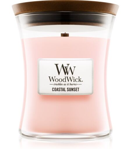 Woodwick Coastal Sunset geurkaars met een houten lont 275 g
