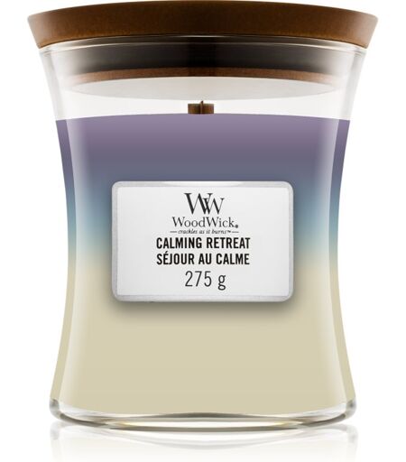 Woodwick Trilogy Calming Retreat geurkaars met een houten lont 275 gr